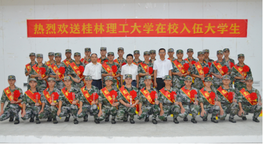 9月9日下午,我校在桂林市示范性教育实践基地举行2020年大学生应征入伍欢送仪式,学校副校长邓国彬、党委武装部负责人共同为即将携笔从戎的入伍学生送行。