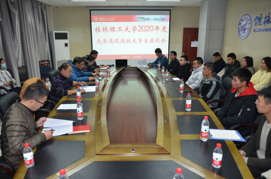 12月22日下午,武装部在雁山校区行知楼B301会议室召开2020年退役大学生座谈会。武装部、学工部(处)、教务处、团委以及2020年退役大学生代表参加会议。会议由黄海副部长主持。