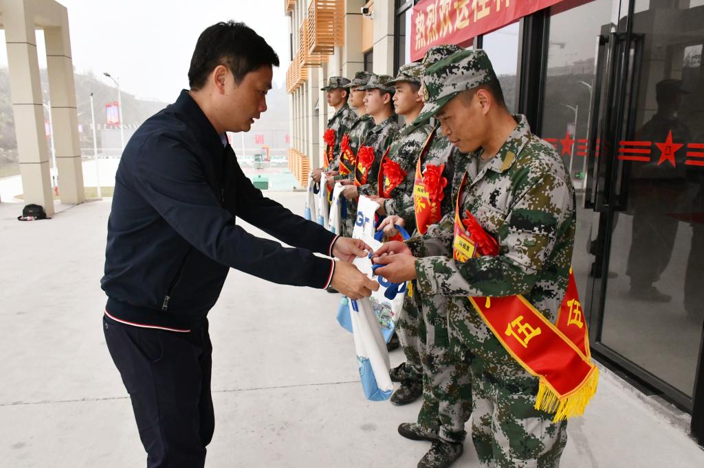 张瑞部长在仪式上讲话。他向应征入伍的新兵们表示热烈祝贺,并希望全体应征入伍学生,一是能够坚定理想信念。青年大学生应征入伍是时代赋予我们的重任,使命光荣、责任重大。二是及时转变角色,加强学习。我们从校园走进军营以后,生活方式和学习方式都有了新的转变,希望大家尽快转换自己的角色,适应军营生活。三是希望大家不断锤炼自我。勤学苦练提高本领,在艰苦的环境中磨练和锻造自己,不断提升自身的综合素质。四是希望大家能够充分展现最好的自我。要时刻牢记自己是桂工人,牢记使命与担当,服从命令,听从指挥,刻苦训练,在部队大熔炉里面多立新功,取得好的成绩,为学校、为家乡、为自己争得更多的荣誉。
