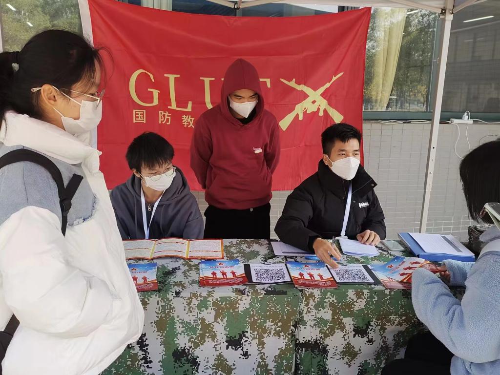 为鼓励学生积极参与应征入伍,提高兵员征集质量,推进国防和军队现代化建设,我们克服疫情带来不良影响,分别在屏风和雁山两校区设置征兵政策宣传值班点,宣传2023年征兵最新政策,为有意向参军入伍的同学提供咨询答疑服务。同时建立了征兵政策答疑QQ群,为对征兵政策有疑惑的同学们提供线上答疑,退伍老兵“一对一”向现场感兴趣的同学分享了自己的军旅精彩生活。