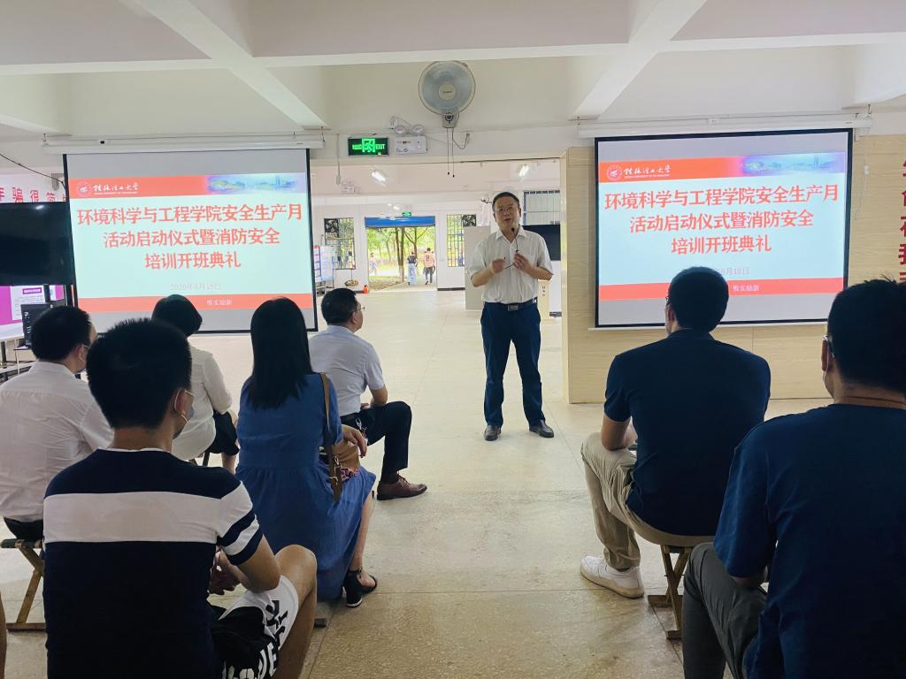 为持续提升二级学院安全教育水平和师生安全意识,不断提升师生员工的安全感和幸福感,根据环境学院工作安排,我处于6月18日下午,在教8栋负一楼“安全教育基地”开展消防安全培训活动。学校党委常委、副校长王敦球,学院党政领导班子,各教研室、实验室教师代表及学院研究生、本科生学生代表共计80余人参加活动。
