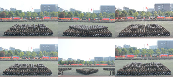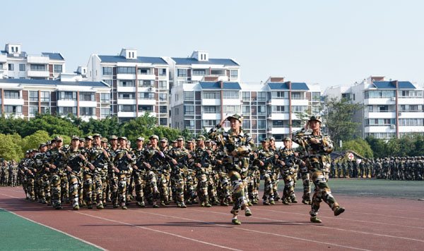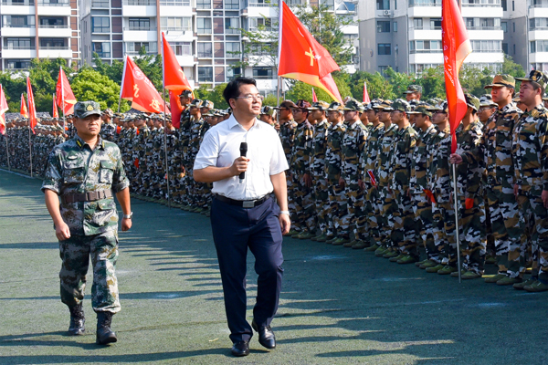 学校党委书记李国忠检阅参训学生