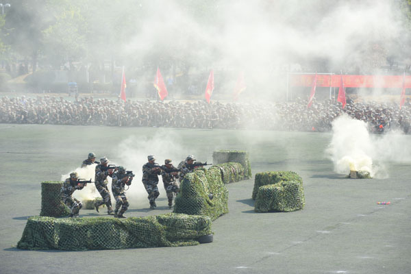 男子持枪方阵接受检阅