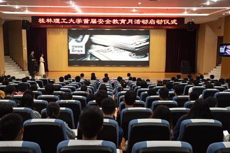 为切实推进我校校园安全建设,4月16日晚在雁山校区图书馆报告厅举行了我校首届校园安全教育月启动仪式。保卫处副处长黄海,消防科科长王治国以及各学院师生代表约200人出席了本次活动。