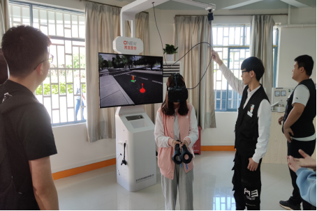 师生代表体验消防模拟设备