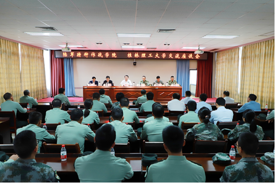 会上,李国忠对王炳军一行到我校调研交流表示热烈欢迎,并就长期以来陆军特种作战学院对学校给予的关心和帮助表示衷心感谢。他从办学历史、办学规模、办学层次、师资队伍建设、学校荣誉、科研实力、学生就业等方面向来访客人介绍了我校的具体情况。他指出,学校高度重视党建工作,通过强化学校党委把方向、作决策、抓班子、带队伍、保落实能力,抓好基层党组织建设工作、打造基层党建品牌等形式,全面加强党的领导,确保坚持社会主义办学方向,有效地落实立德树人根本任务。李国忠表示,在军民融合大背景下,我校愿与陆军特种作战学院建立更加紧密的关系,为国防和军队现代化建设作出应有的贡献。