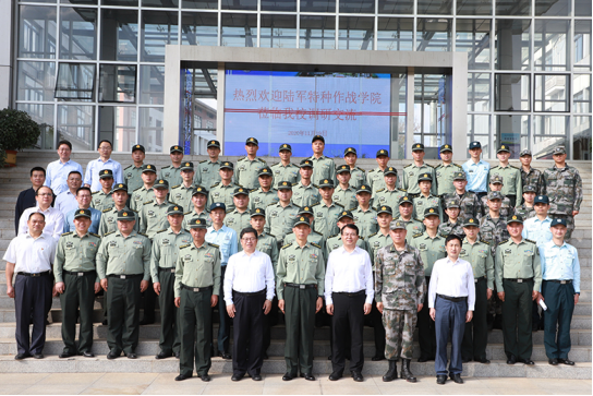 王炳军对我校的热情接待和大力支持表示衷心感谢。他从办学历史、办学职责、办学校区、教员队伍结构、学院荣誉、招生来源和规模等方面介绍了陆军特种作战学院的具体情况。他指出,近年来,陆军特种作战学院与我校在学生军训、四六级考试、国防教育等合作中建立了深厚的情谊。他表示,我校党建工作经验具有借鉴意义,希望在军民融合工作中,能与我校加强在党建、教学、科研等方面的交流合作,实现优势互补,共同促进双方发展。