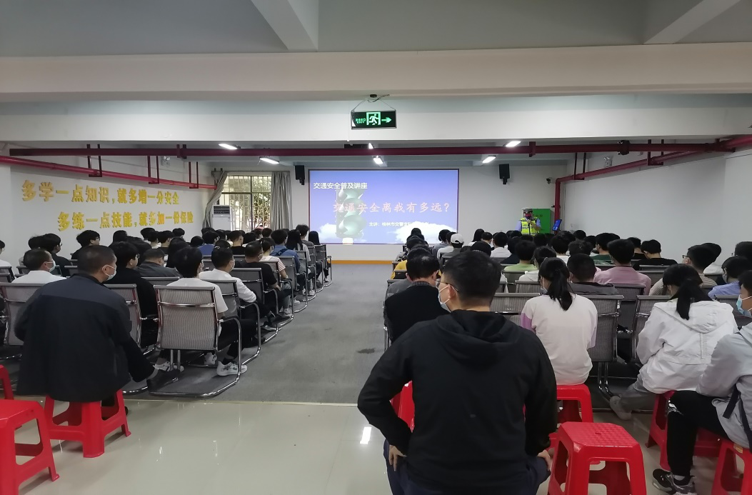 首先,保卫处鞠敏敏副处长从活动目的、校园及周边交通形势、近年校园交通事故、常见交通陋习等方面进行活动动员。随后,雁山交警李木壮警官从交通事故警示视频、汽车等常用车辆盲区体验、车辆遇险急救等进行了宣传,要求师生员工驾驶车辆,要时刻牢记安全、严格遵守交规、礼让行人、有序停放。