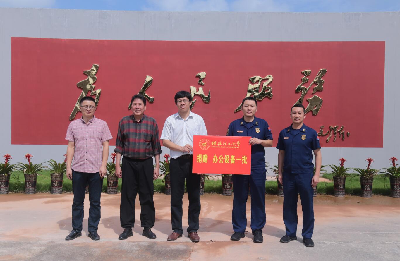 6月14日,武装部保卫处副部(处)长黎超业、副处长鞠敏敏一行到雁山消防救援大队捐赠办公设备一批。