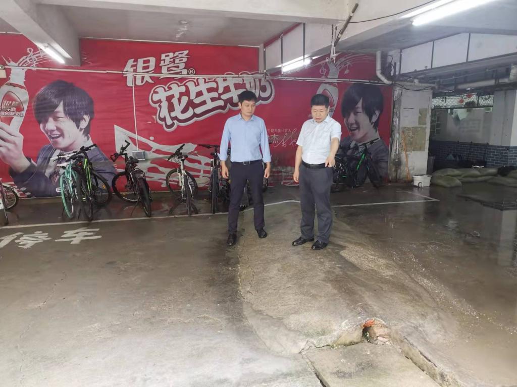 6月22日,学校党委常委、副校长邓国彬到屏风校区各重点区域现场检查指导防汛防灾工作。保卫处、基建处、后勤集团等部门负责人陪同检查。