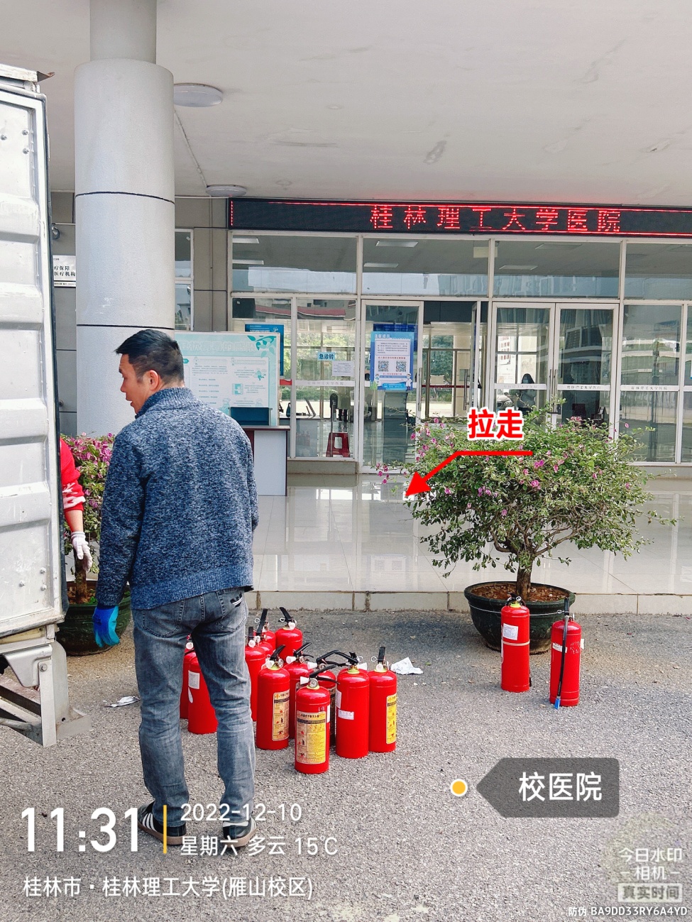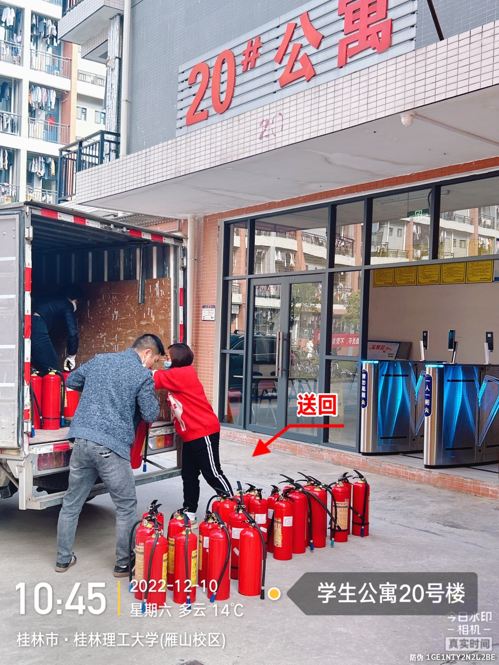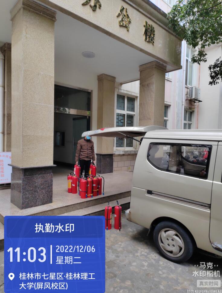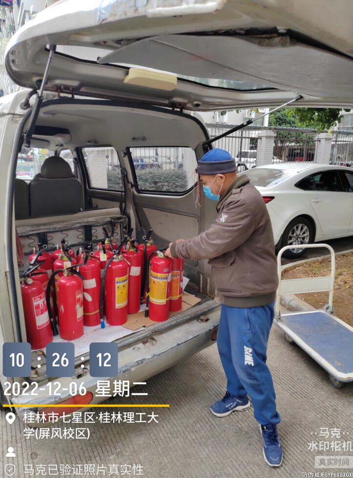 屏风、雁山两校区消防安全管理涉及的点位众多且分散,组织集中回收灭火器难度较大,保卫处研究制定了“安全第一、分批更换”的工作原则,按照“谁使用、谁负责”的要求,制定了详细的回收方案。回收过程中,对每一瓶灭火器仔细检查、认真核对有效日期,对临近或超过有效期、外壳损坏的灭火器及时维修更换,并将数量、存放位置进行了详细的归档记录。