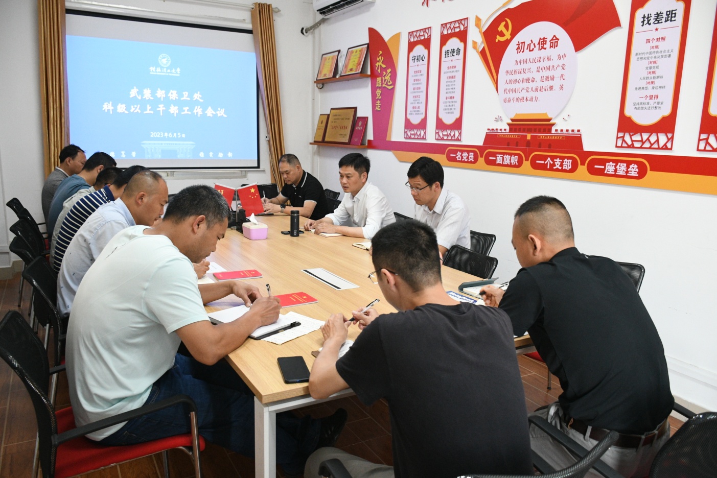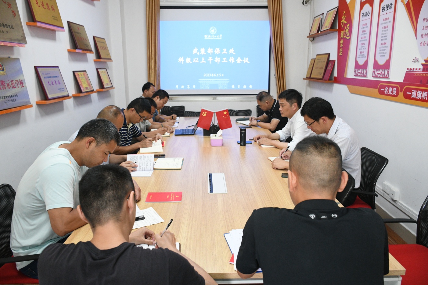 6月5日上午,武装部保卫处在屏风校区会议室召开科级干部工作会议,会议由武装部 保卫处部(处)长张瑞主持,武装部保卫处科级干部参加会议。