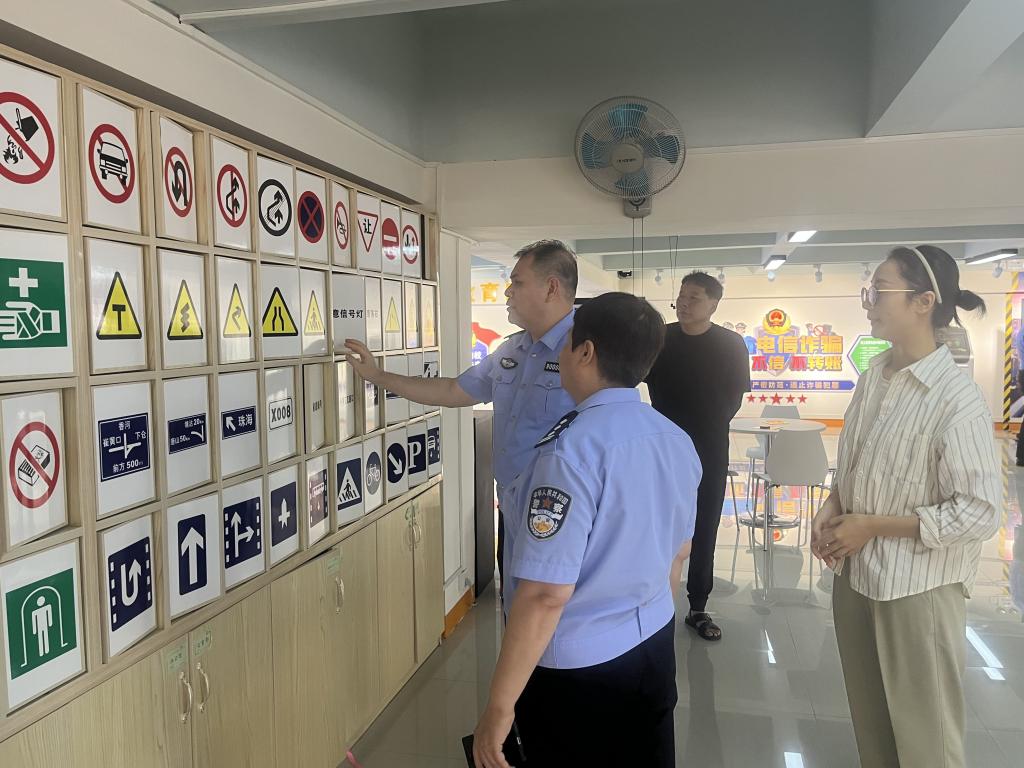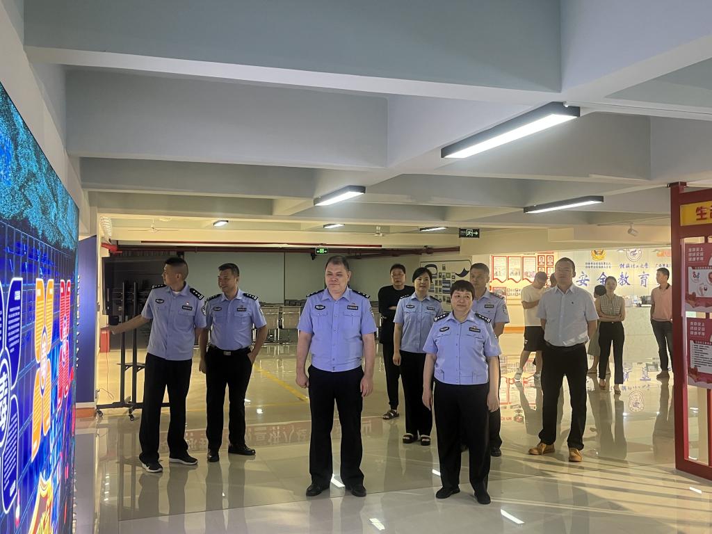 6月5日下午,自治区公安厅交警总队统一执法处副处长朱文忠、桂林市公安局交警支队副支队长温芳华一行莅临我校安全教育基地参观调研,雁山交警大队、保卫处副处长鞠敏敏陪同参观。