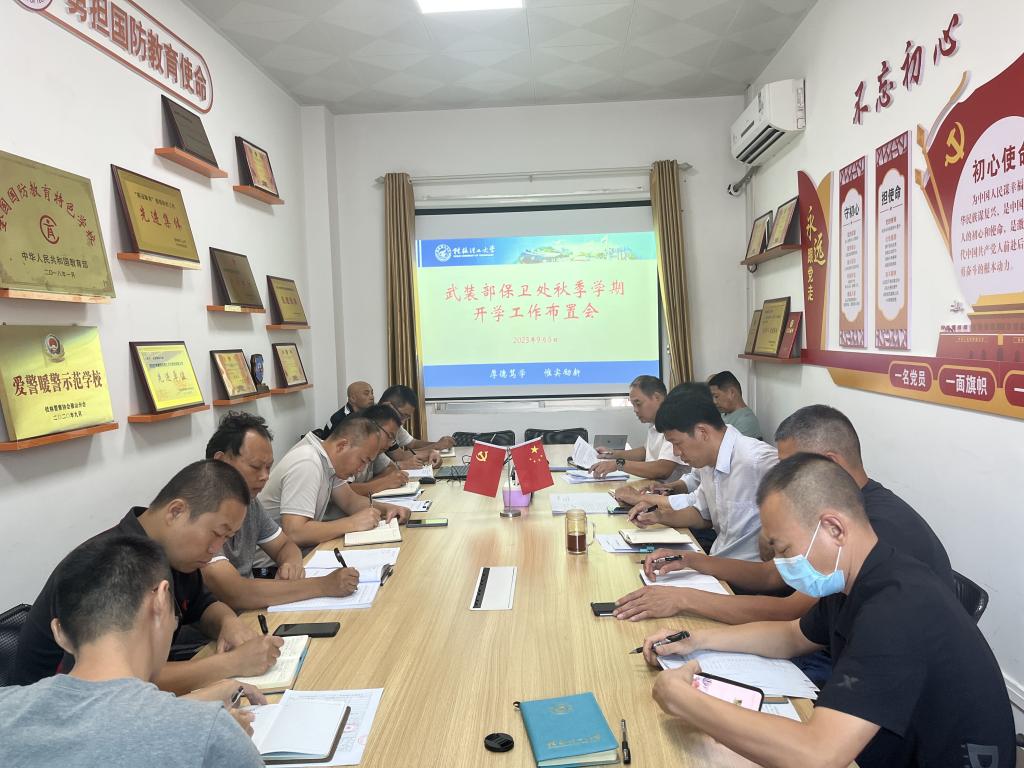 9月5日上午,武装部保卫处在屏风校区103会议室召开2023年秋季学期开学工作布置会。会议由武装部保卫处负责人主持,武装部保卫处全体人员参加会议。