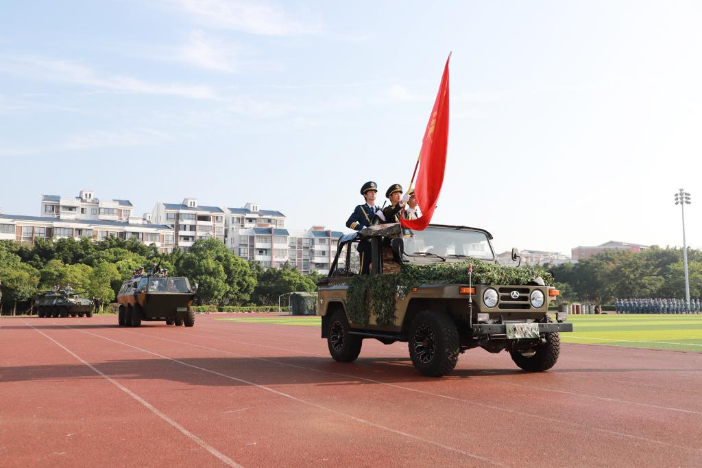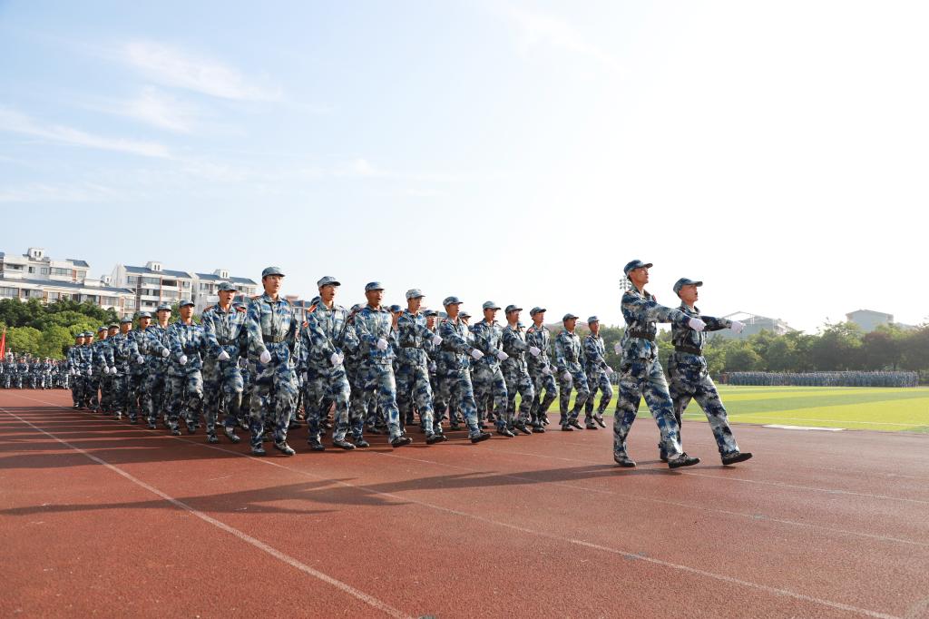 邓军指出,今年学校首次将军训时间增加到了16天,16天来,同学们通过刻苦训练,不仅熟悉掌握了军事基础知识和军事基本技能,增强了国防观念、爱国主义精神、集体主义精神、担当奉献精神和组织纪律性,提升了综合素质,也完成了一次意志的磨砺和成长的蜕变,彰显了新时代桂工学子“请党放心,强国有我”的坚定信念和青春风采。他向同学们提出三点期待:一是希望同学们厚植爱国情怀,胸怀祖国、心系天下,努力成长为有理想、敢担当、能吃苦、肯奋斗的新时代好青年,以奋斗者姿态激扬青春、不负时代、不负年华;二是希望同学们继承光荣传统、弘扬优良作风,把军训的丰硕成果转化为更加坚定的爱国立场、更加深沉的社会责任、更加广泛的道德使命、更加自觉的纪律意识、更加忘我的集体主义精神、更加顽强的意志品质;三是希望同学们学好强国本领,涵养大气、朝气、锐气,不偷懒、不停歇、不服输,勤学苦练、勤奋学习、躬身实践,下够苦功夫,练就真本领,成为德智体美劳全面发展的社会主义建设者和接班人。