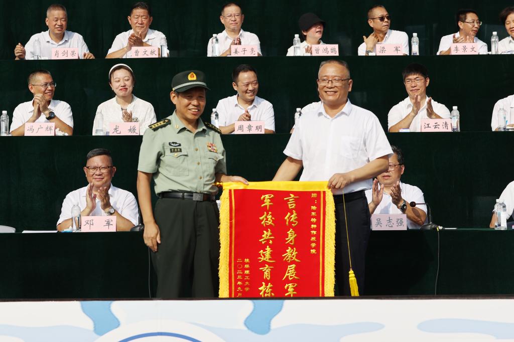 学校党委副书记、校长王敦球为陆军特种作战学院赠送锦旗