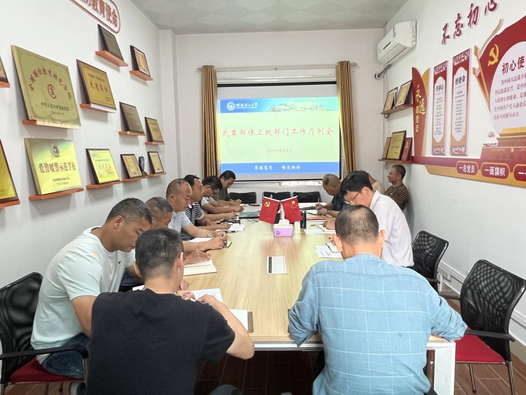 10月19日上午,武装部保卫处在屏风校区会议室召开部门工作例会。会议由党委武装部保卫处负责人主持,党委武装部保卫处全体人员参加会议。