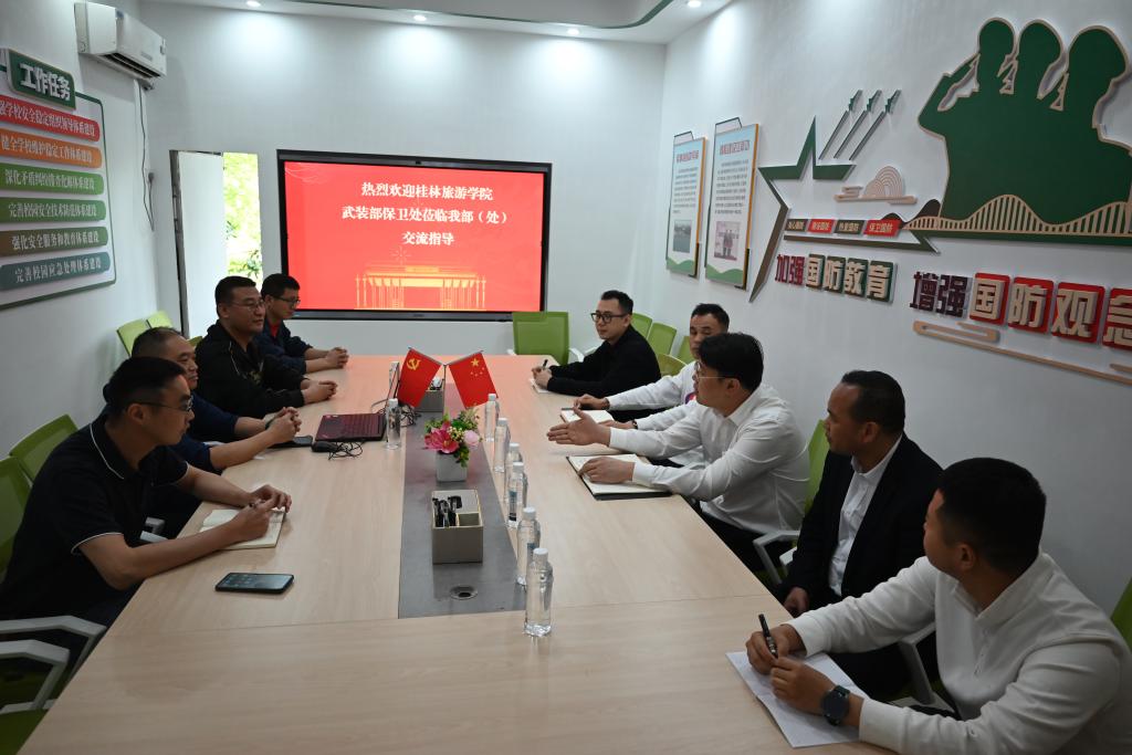 3月28日上午,桂林旅游学院武装部保卫处孟凡钊部(处)长一行5人来我部(处)调研校园安全保卫工作,部门相关负责人在雁山校区行知楼206备勤室接待了来访,相关科室负责人参加了座谈会。
