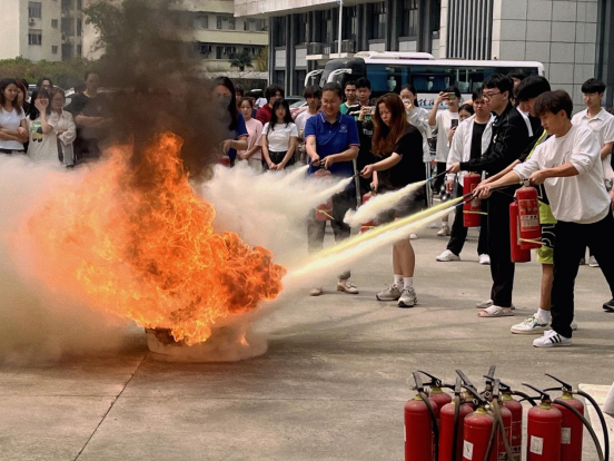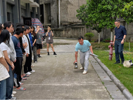 保卫处工作人员从消防安全常识培训、宿舍区应急疏散、消防器材使用等三个方面进行了讲解,随后,在工作人员的指导下分组进行了灭火器使用、消火栓使用等实操演练。