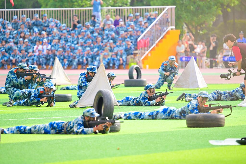 9月27日上午,我校在雁山校区风雨操场举行2024级本科新生军训科目展示暨总结大会。在家校领导邓军、韦学敏、王磊、黎贞崇、罗盛锋、曾繁荣,陆军特种作战学院学员大队副大队长李峥、桂林市消防救援支队副支队长唐锋,校党委常委唐壮东、叶昊、邱杰,校长助理张成龙出席大会。学校军训工作领导小组成员,各二级学院党委书记、院长,各相关职能部门负责人在主席台观礼。军训旅全体教官、指导员,全体2024级参训学生参加大会。大会由学校党委常委、副校长罗盛锋主持。