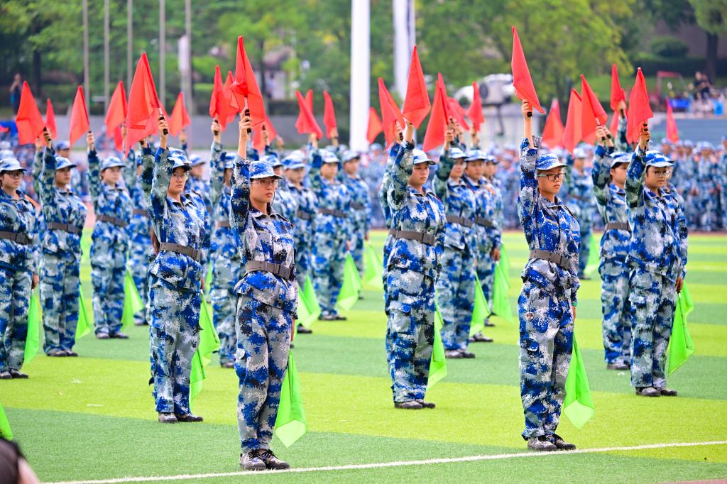 上午8时,伴随着庄严的国歌声,五星红旗冉冉升起,全体人员面向国旗庄严肃立、行注目礼,表达对祖国的敬意与满腔热爱,2024级新生军训成果汇报展示正式拉开序幕。“