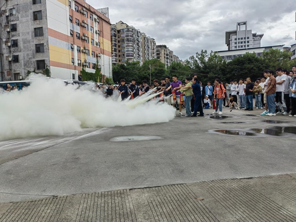 活动伊始,七星消防的工作人员通过消防移动科普道具直观演示火灾中烟雾和有毒气体的运动规律,真实模拟了火灾情况下有效疏散逃生、初起火灾处置、常规灭火器材使用等实用消防常识,使在场师生对消防安全有了更加直观的认识,有效提升了消防安全意识和应急处置能力;随后依次开展了灭火毯实操、灭火器实操、室内外消火栓实操及逃生和应急疏散演练,参与师生纷纷表示:“要认真学习掌握消防安全知识,才能在真正面对危险时沉着冷静,正确处置,这样的实操培训很有必要”。