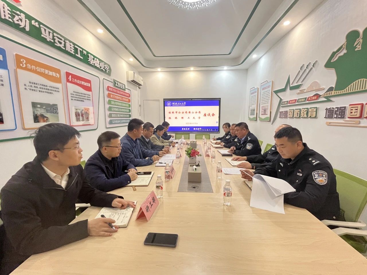 我校相关部门负责人就电信网络诈骗工作和学校矛盾纠纷排查化解工作开展情况进行汇报,希望与雁山分局深化警校共建,在法治教育、反诈宣传教育、校园周边环境治理等多方面为学校提供帮助。