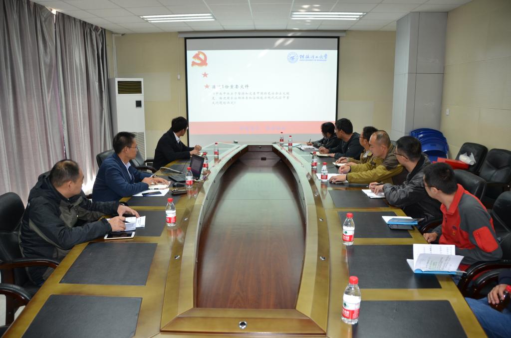11月20日,武装保卫处党支部在雁山校区行知楼B301会议室集中学习党的十九届四中全会精神。会议由支部书记冯广辉同志主持,武装保卫处支部党员参加学习。