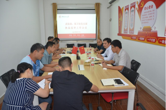 2021年8月17日上午,武装部、保卫处党支部在屏风校区103室召开党支部支委换届选举工作会议,会议由支部副书记黄海主持,支部全体党员参加了换届选举工作会议。