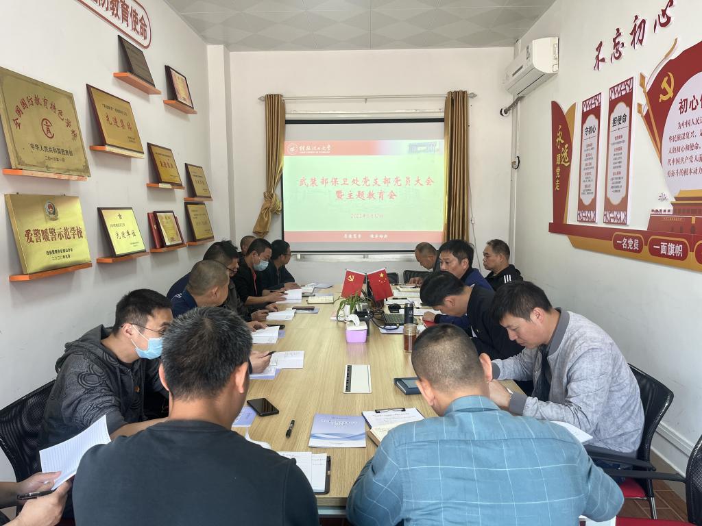 5月12日上午,武装部保卫处党支部在屏风校区保卫后勤楼103会议室召开学习贯彻习近平新时代中国特色社会主义思想主题教育集中学习会议。会议由支部书记张瑞主持,支部全体党员参加会议。