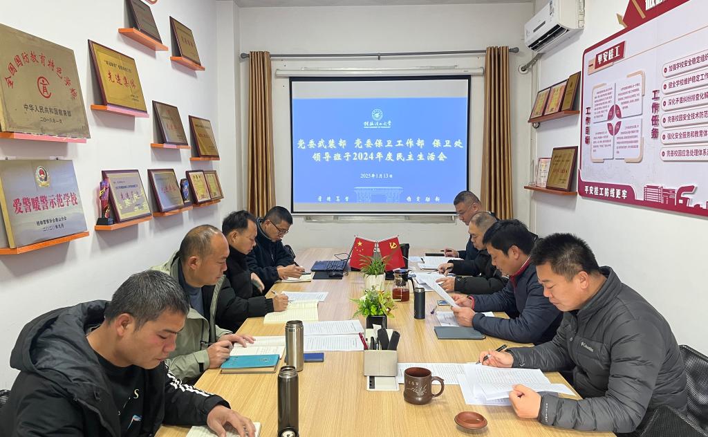 根据学校机关党委的统一部署,1月13日上午,党委武装部、党委保卫工作部、保卫处在屏风校区后勤楼103室召开2024年度党员领导干部民主生活会,会议由党支部书记主持,部门领导班子成员及全体科级干部参加会议。
